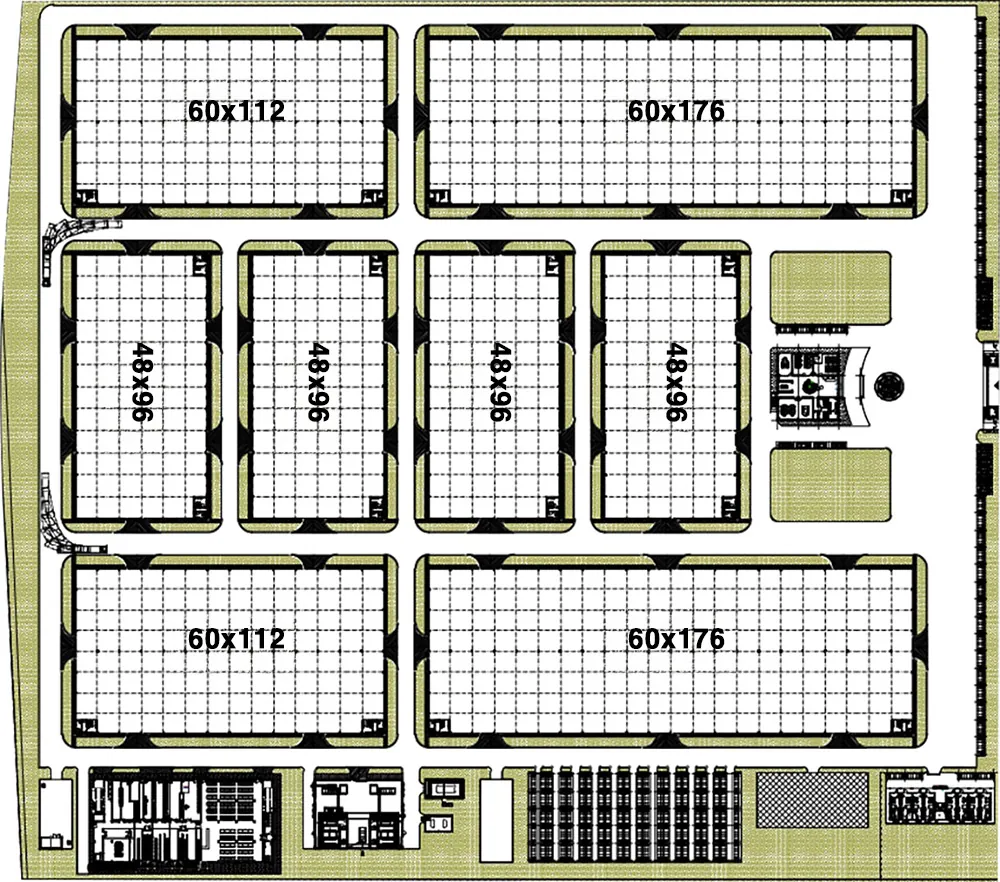 多尺度制造集群,在结构化的工业布局中整合了大型和中型厂房单元。